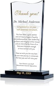 Personalized crystal doctor retirement gift plaque for man or woman, customized with retiree name and retirement date, unique retirement coffee mug gift.